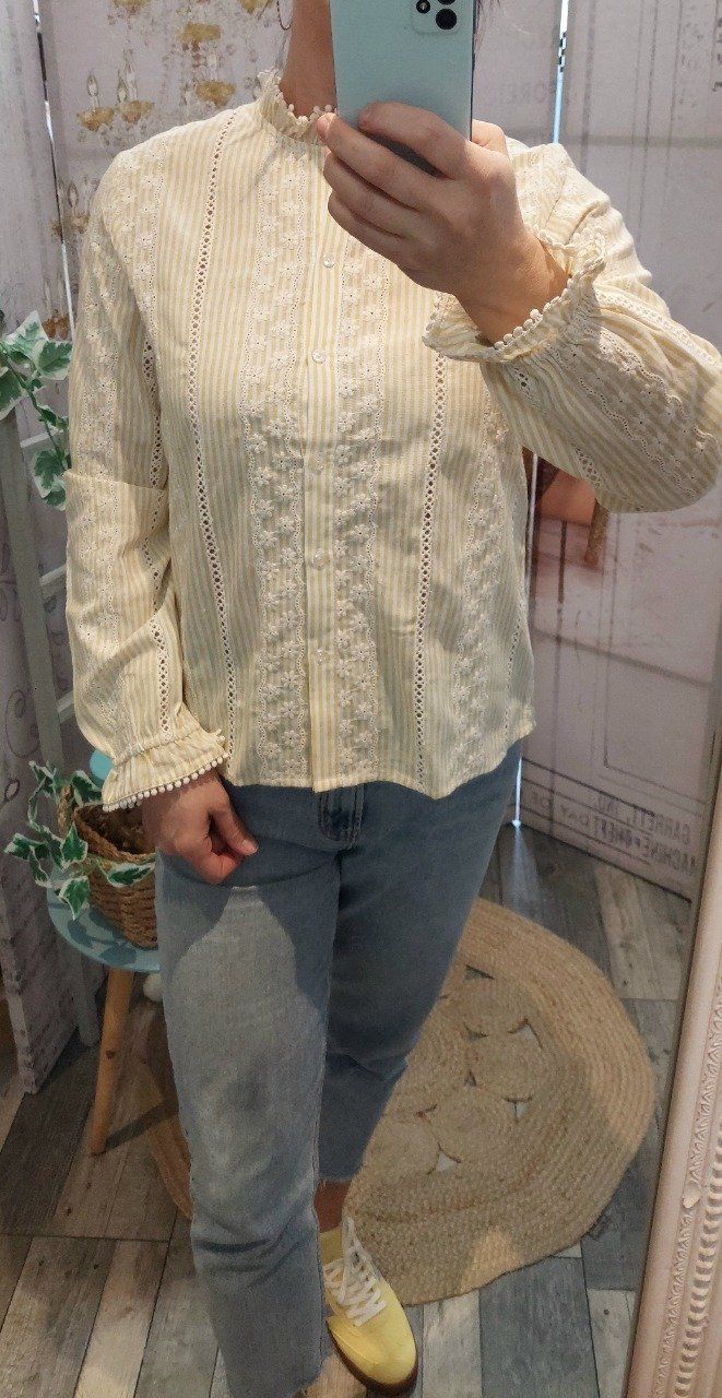 Une jolie chemise jaune avec de la dentelle 35 % Coton