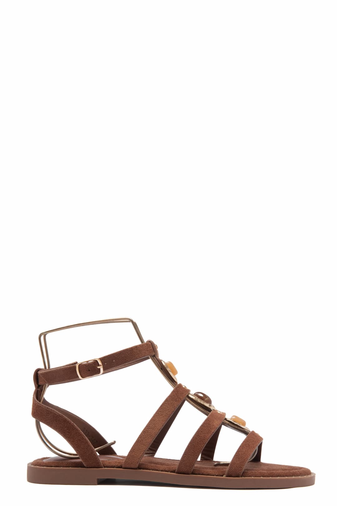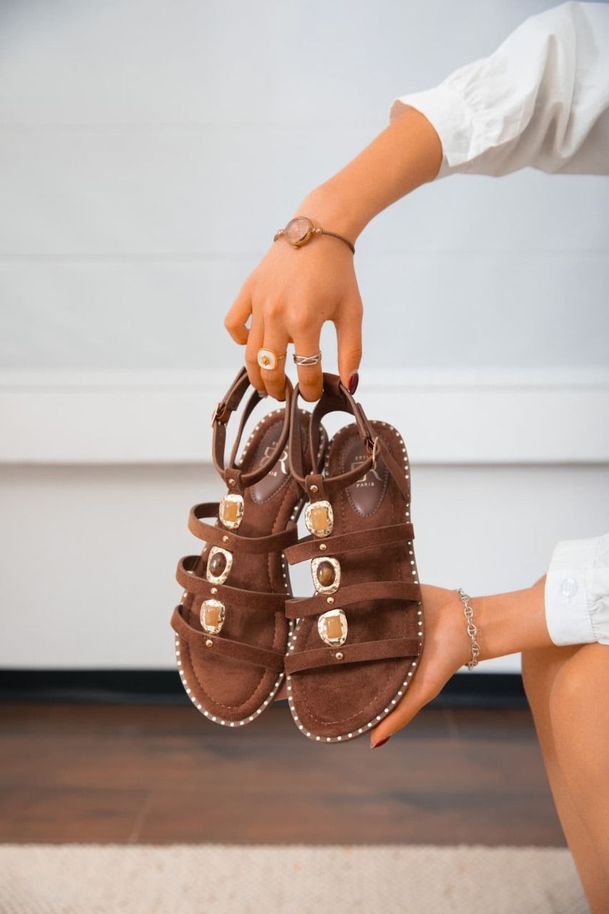Suédine marron ornées de 3 bijoux sur le dessus, attache a la cheville
